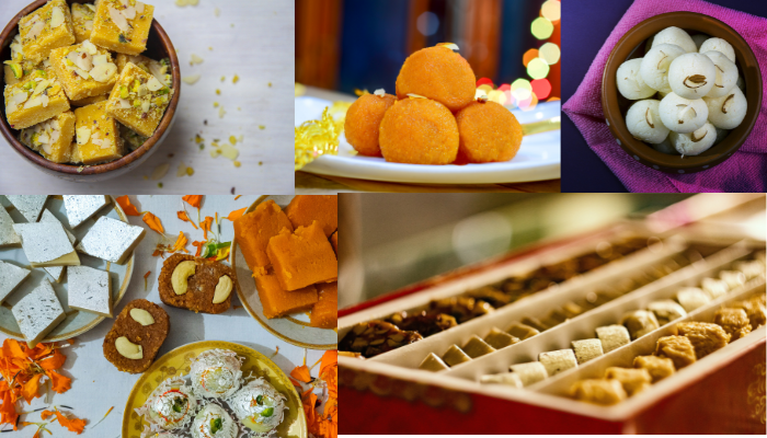 Here are three delicious and simple sweets made with gram flour (besan):  Besan Laddu, Besan Sheera and Besan Burfi Each recipe is rich in taste, easy to prepare, and filled with traditional Indian flavor. Perfect for festivals like Diwali or any special occasion.
